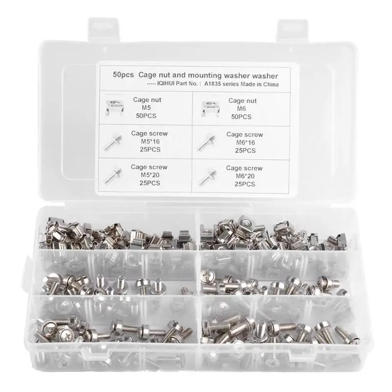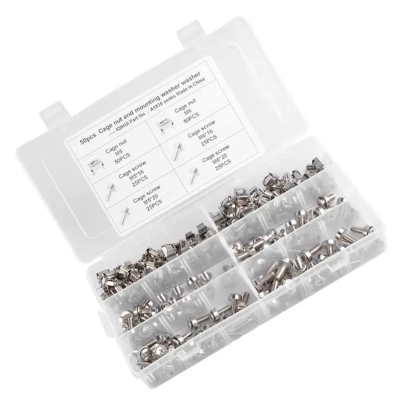 REVIEW TOP SELLER 100pcs M5 M6 Cage Nuts Bolts Washers for Rack Mount Server Shelves Cabinets