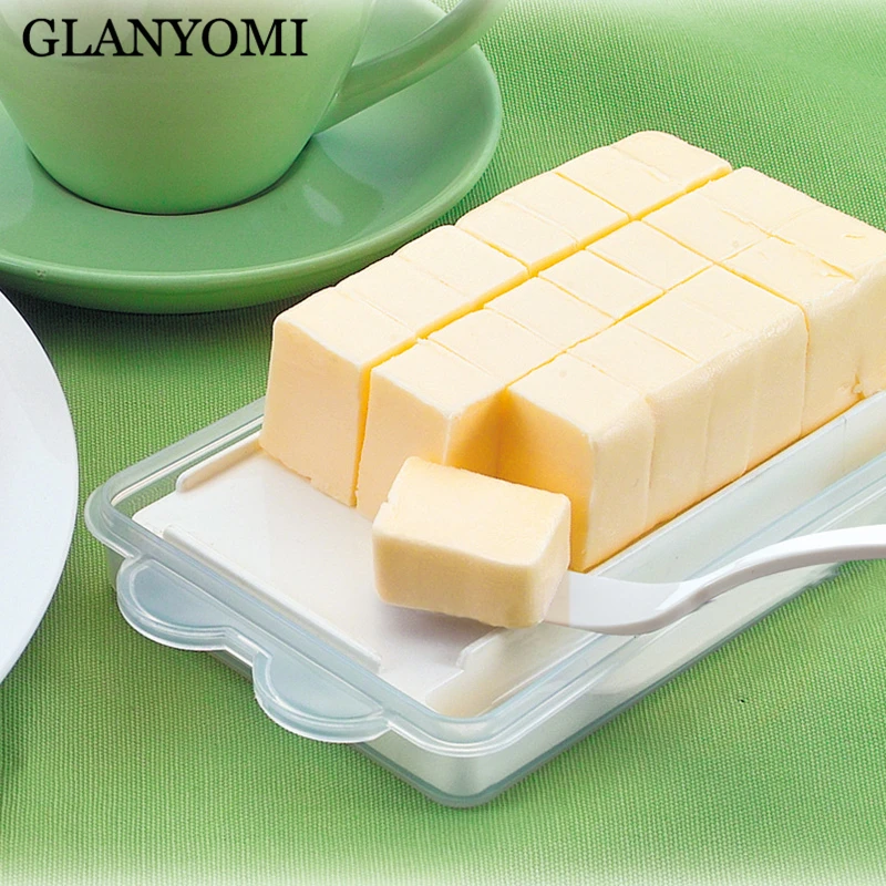 HOT Sale Japan Original Transparent Butter Storage Box Case Container Cheese Server Keeper Tray with Knife &